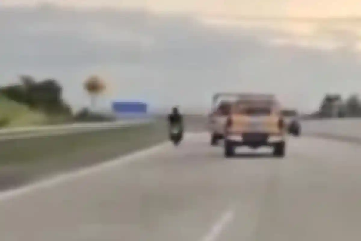 Aksi pemotor tersebut terabadikan kamera ponsel pengguna jalan tol hingga videonya beredar di media sosial.